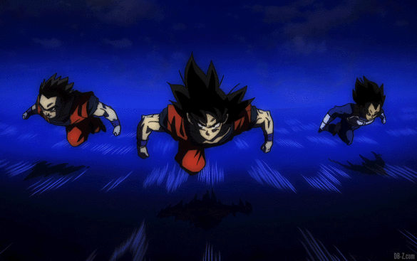 Gohan, Goku, et Vegeta volent