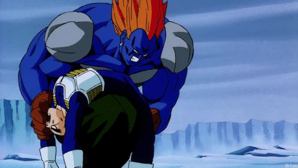 Kid Buu attaque Vegeta Super Saiyan