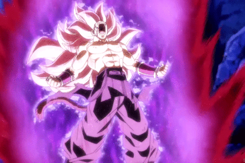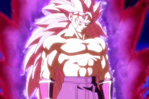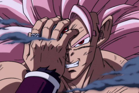 Goku Black dans une forme de Super Saiyan 3 évolué, avec des sourcils et une queue de Saiyans. Il arbore également des cils rosé, ce qui rappelle fortement le Super Saiyan 4. Il explique qu’il a atteint cette forme en absorbant toute l’énergie qui se trouve dans ce faux-univers (créé par Fu) pour le rendre plus fort.