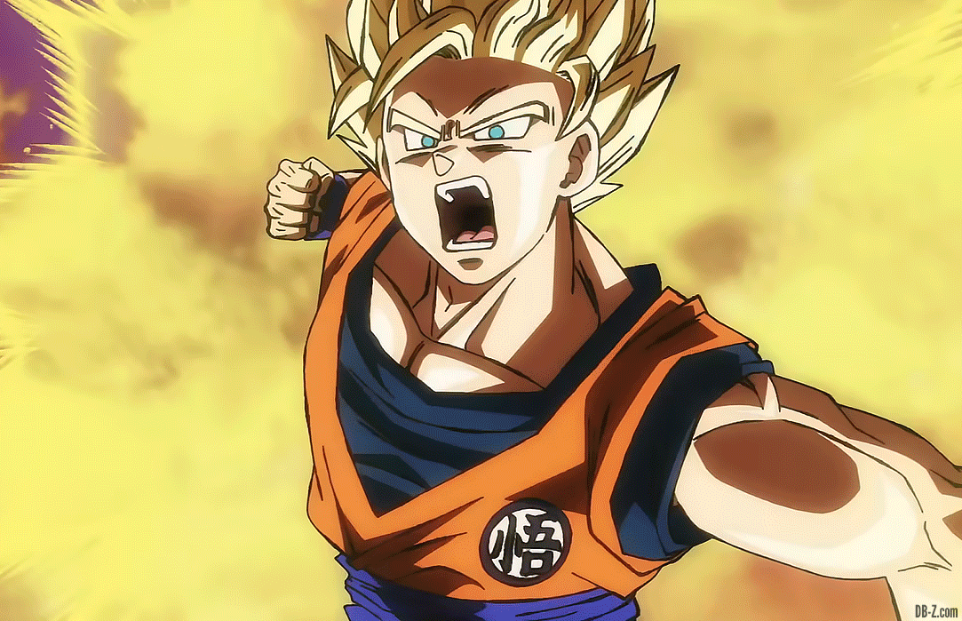 Le combo de Goku Super Saiyan 2 qui se donne à fond lors de sa rencontre avec Beerus sur la planète de Kaio, dans le remaster de Dragon Ball Super Beerus.