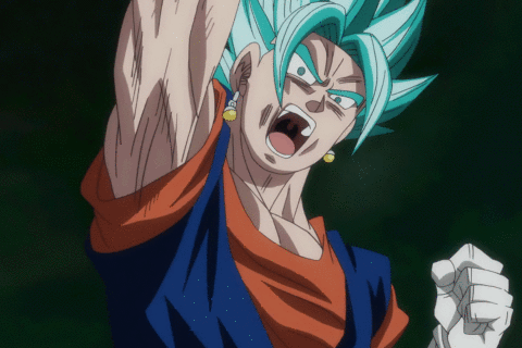 Vegetto se bat les bras croisés contre Super Buu (Gohan absorbé) aka Buuhan. La scène est issue de l’épisode 271 de Dragon Ball Z.
